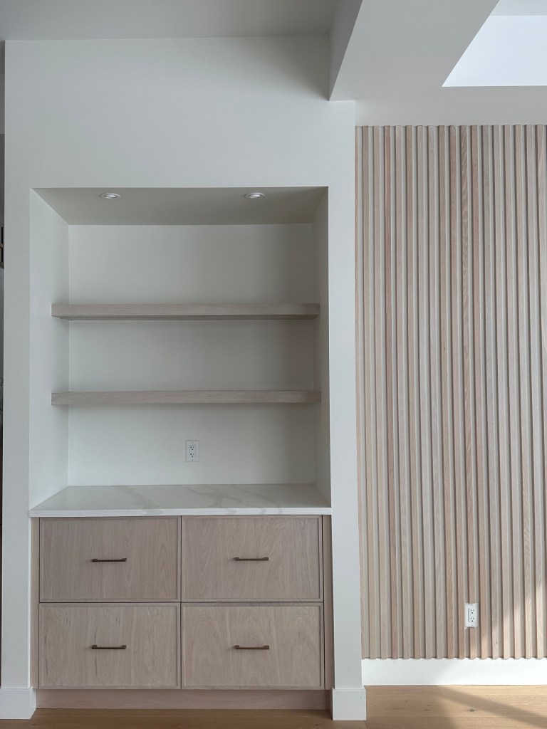 I love how this space turned out — it feels elevated but still warm and liveable. The key to styling any shelf is to mix textures, vary heights, and not overcrowd. Less is always more!